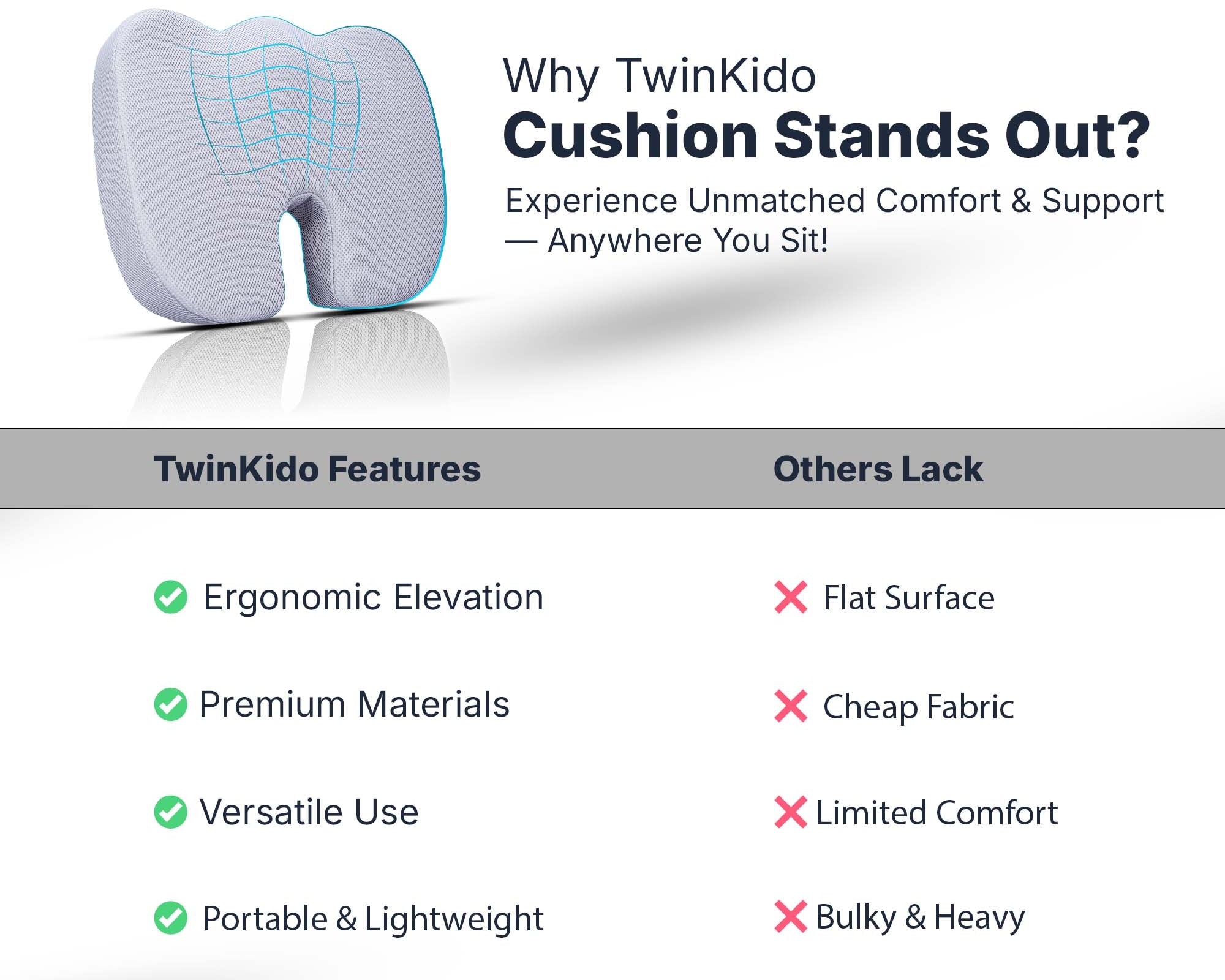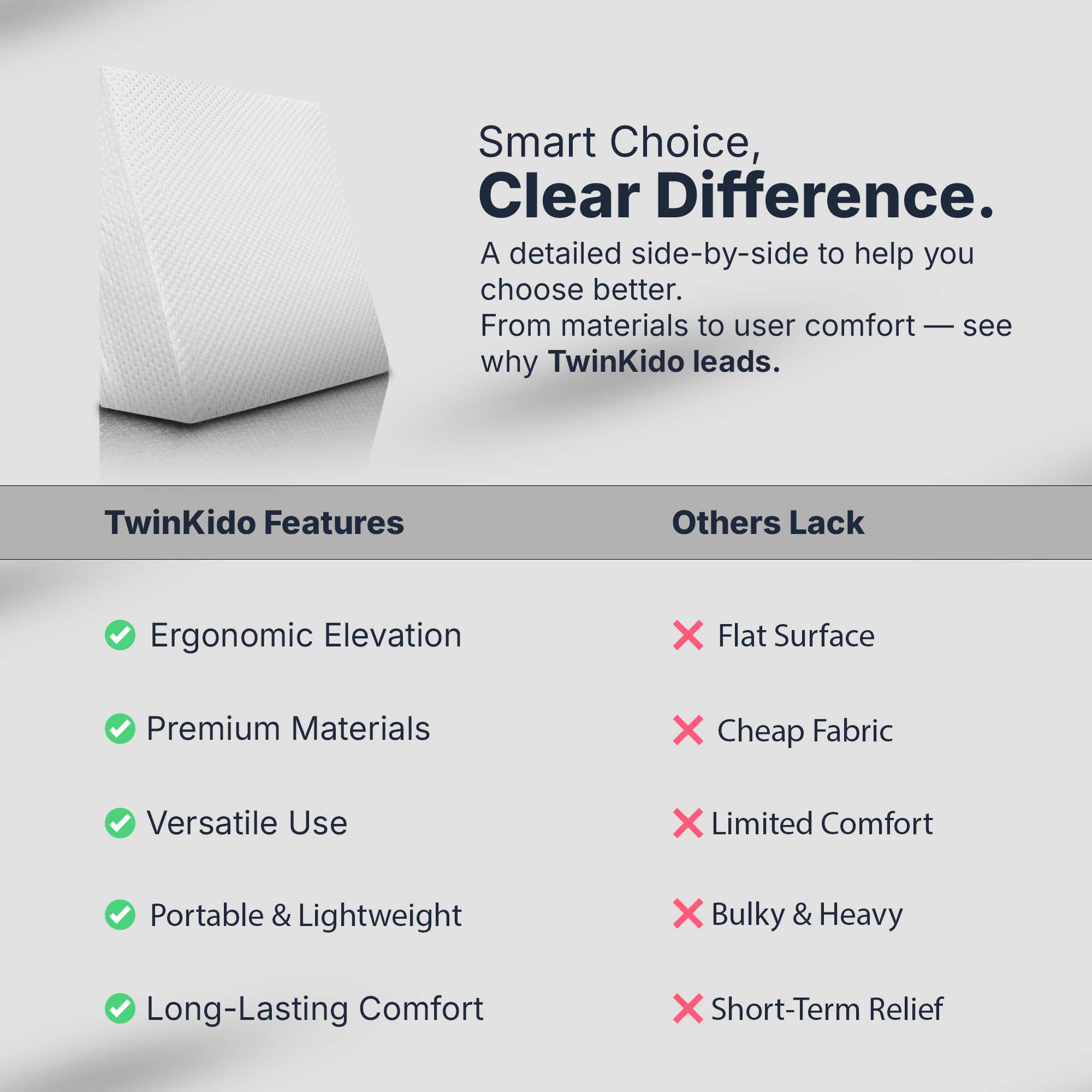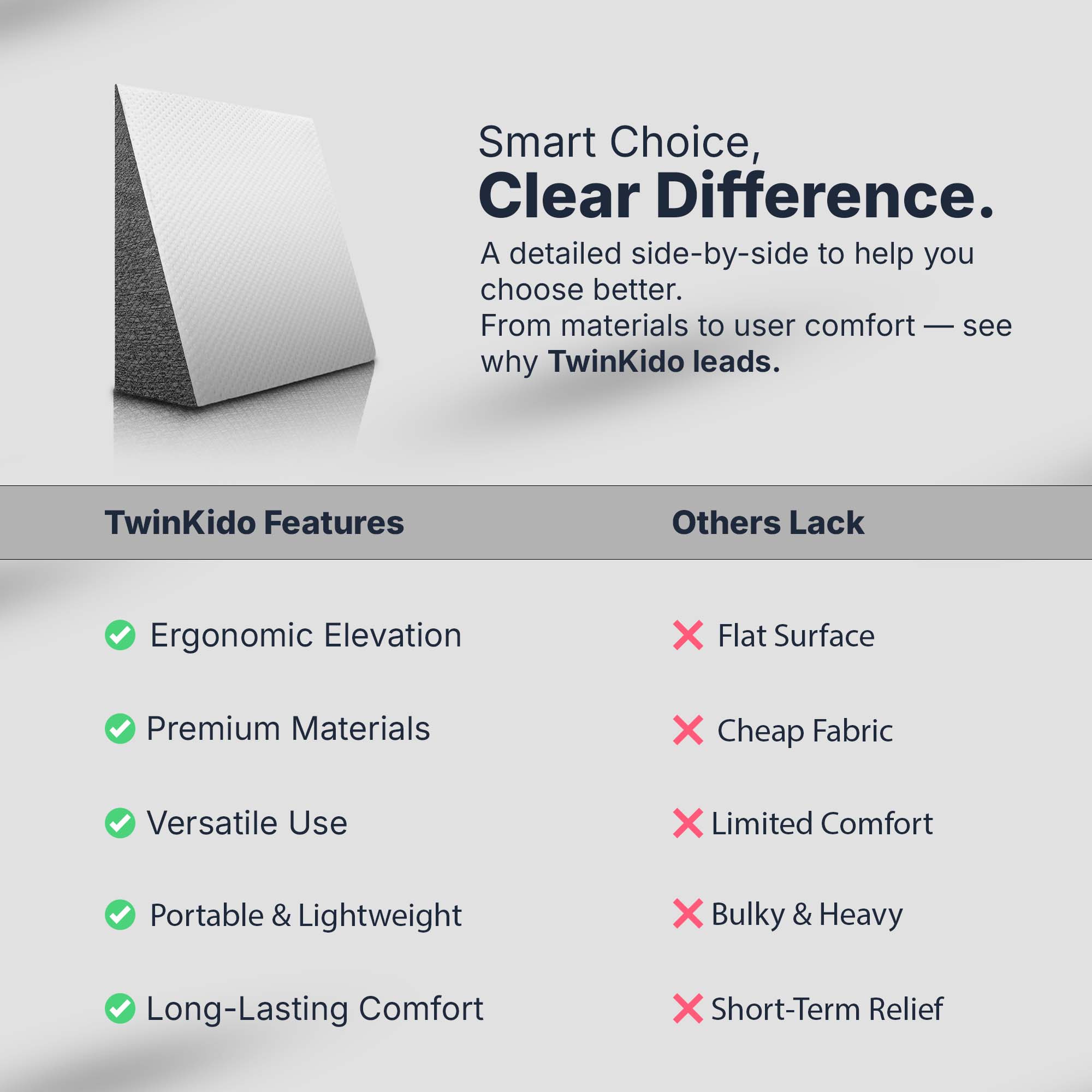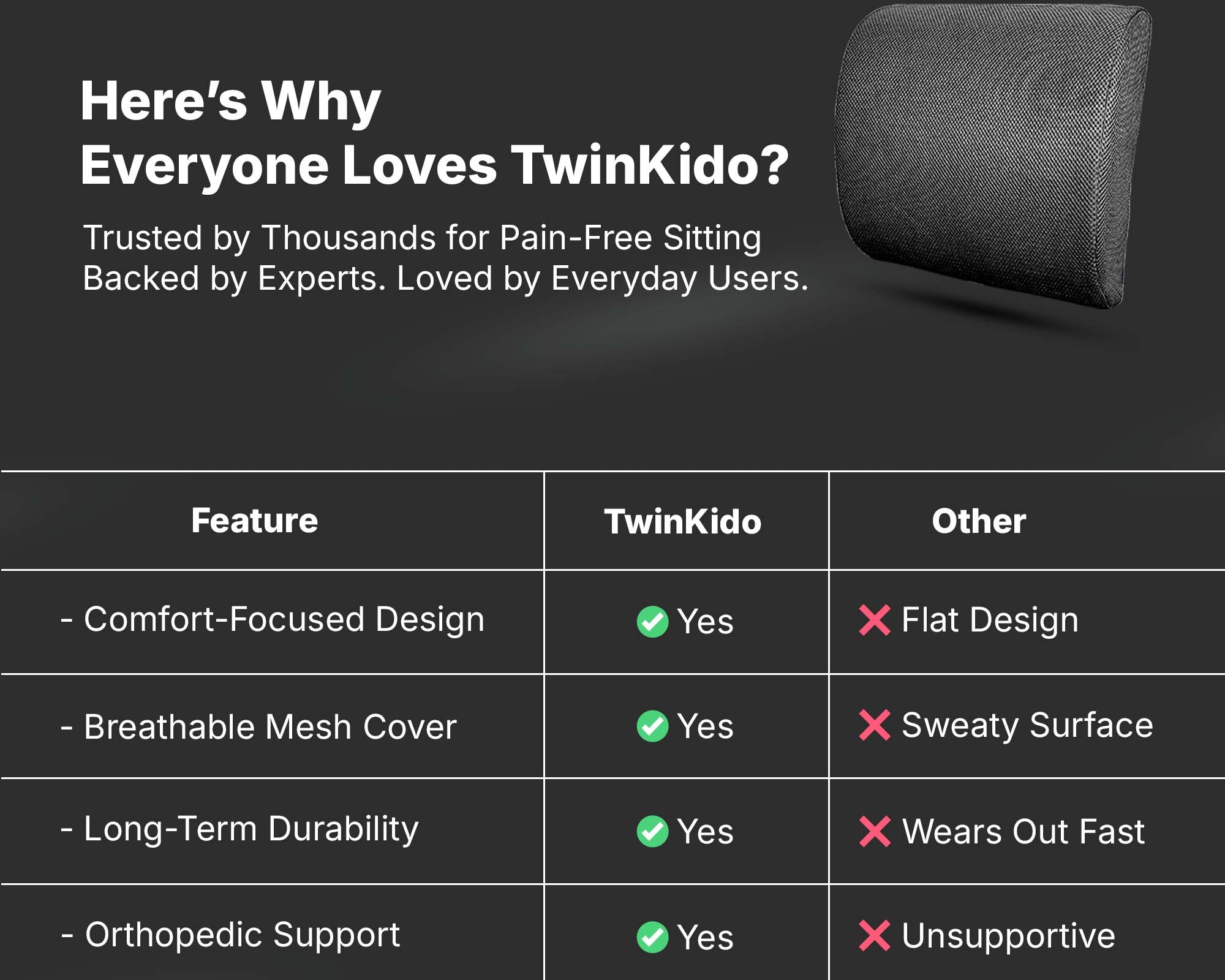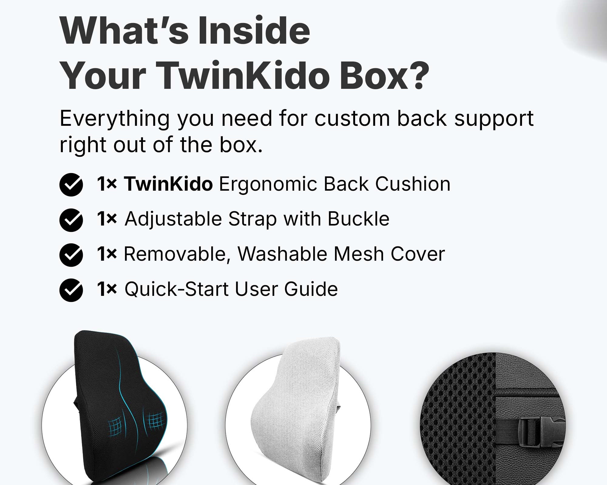 Twinkido doesn’t just build products but we combine science, comfort, and durability to create holistic ergonomic solutions that provide basic pain relief and sleep improvement. Our focus is on improving your overall wellness in today’s fast-paced lifestyle.