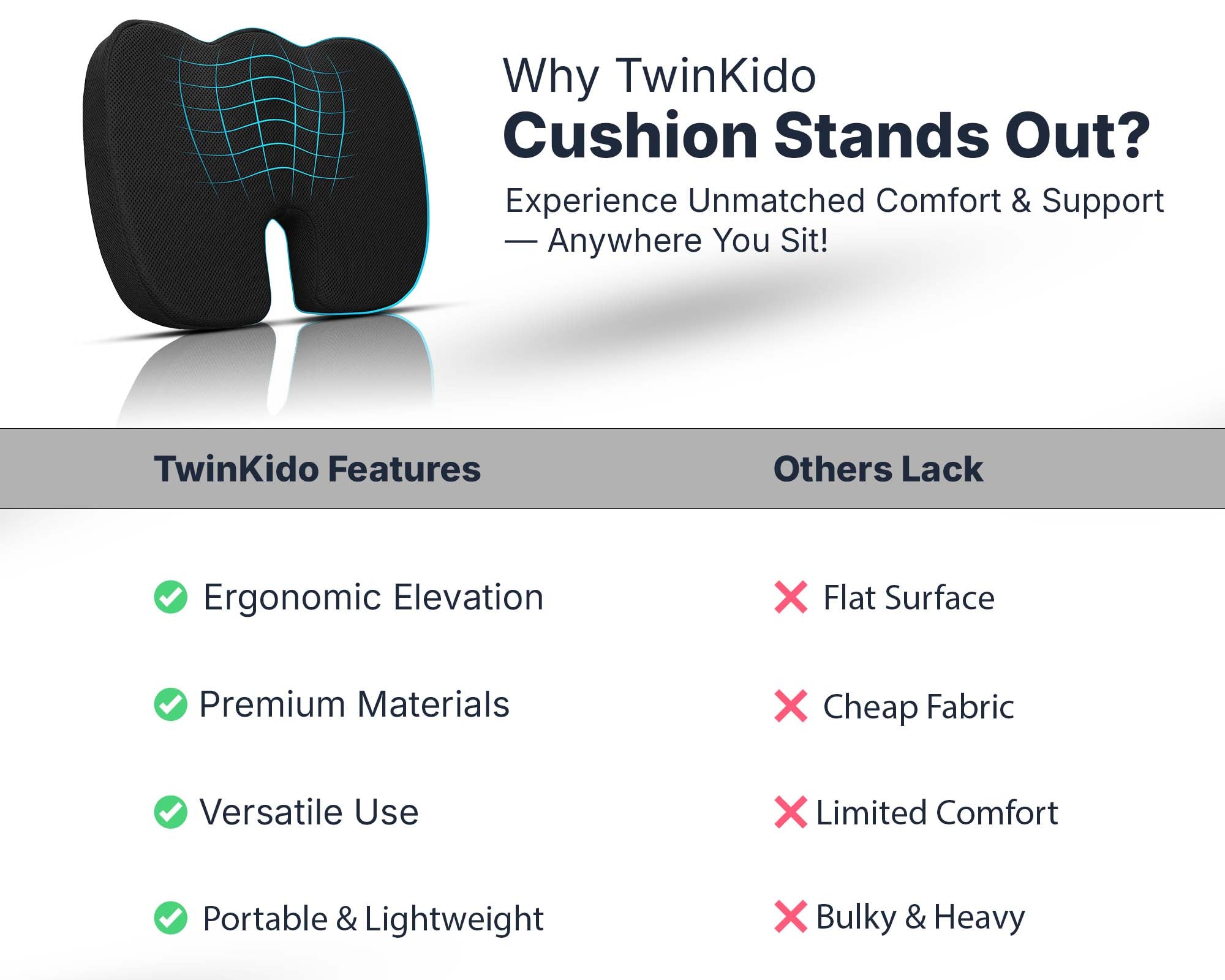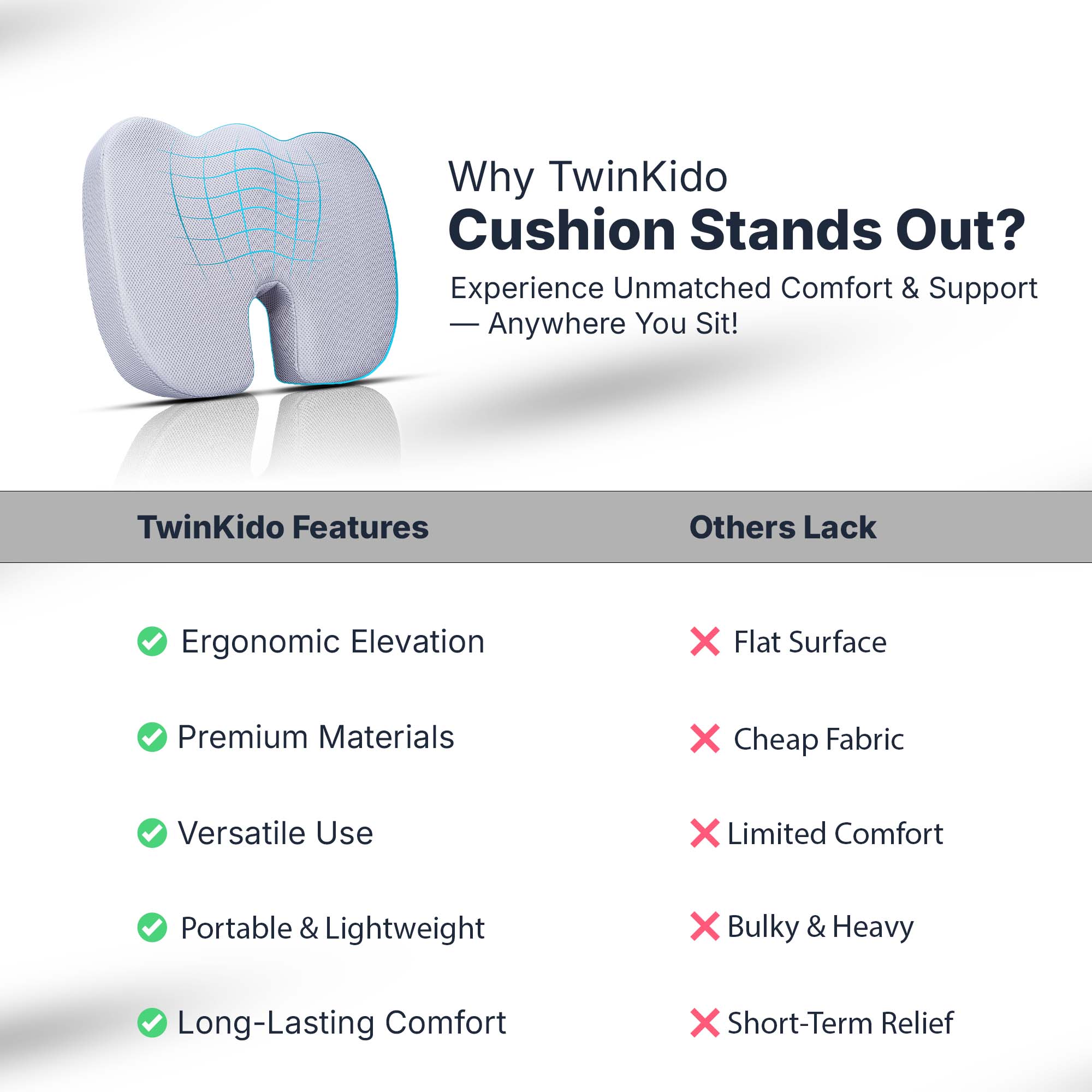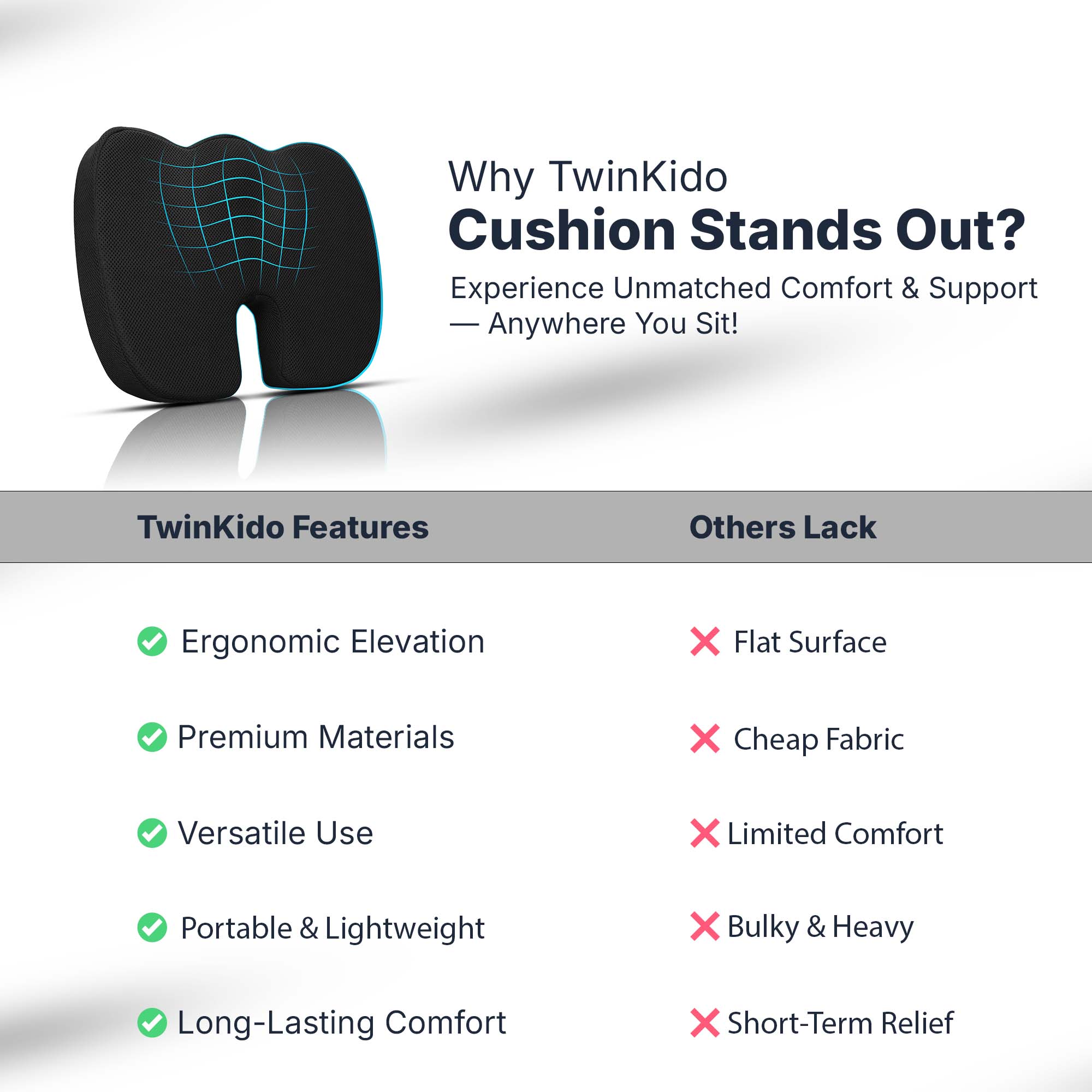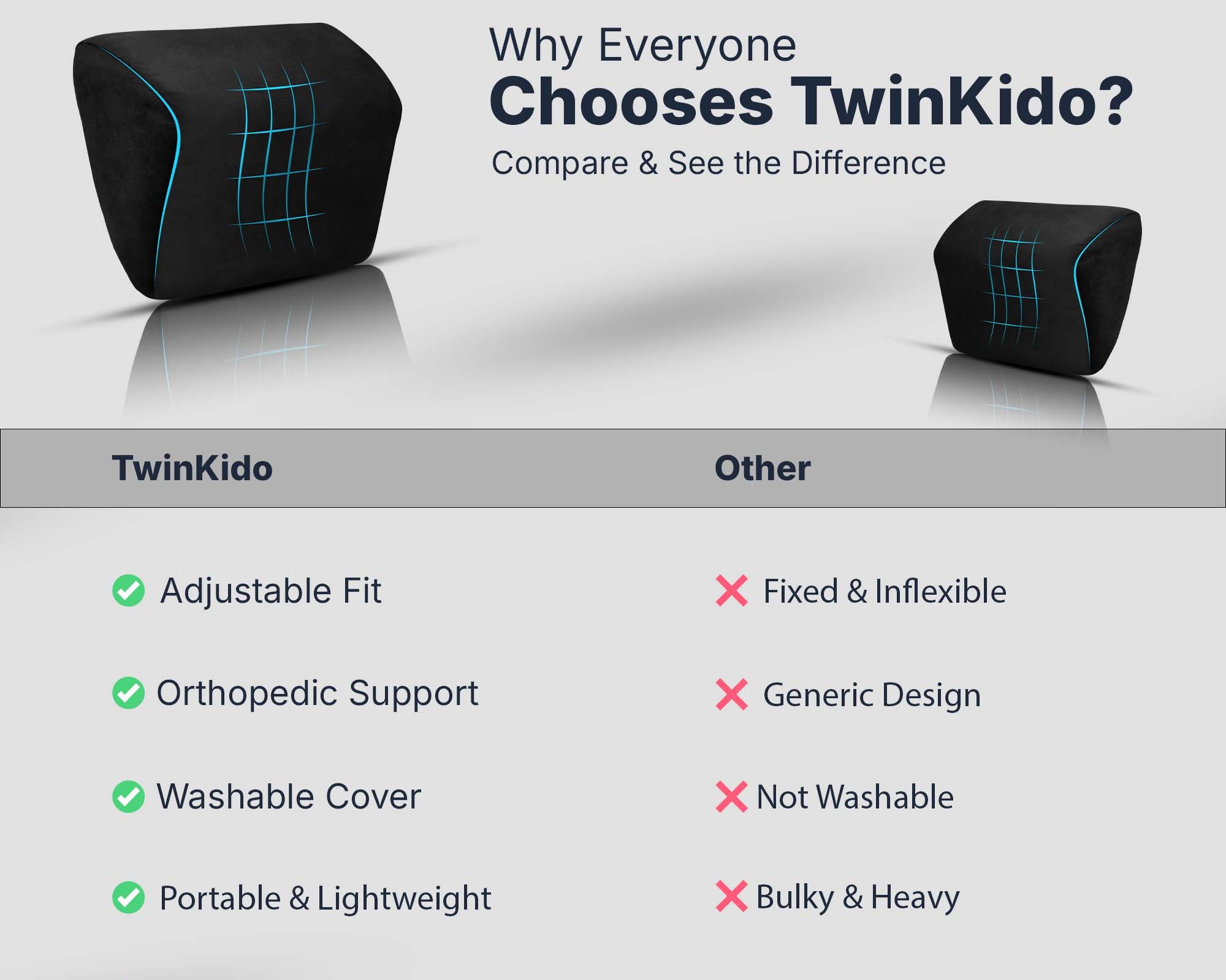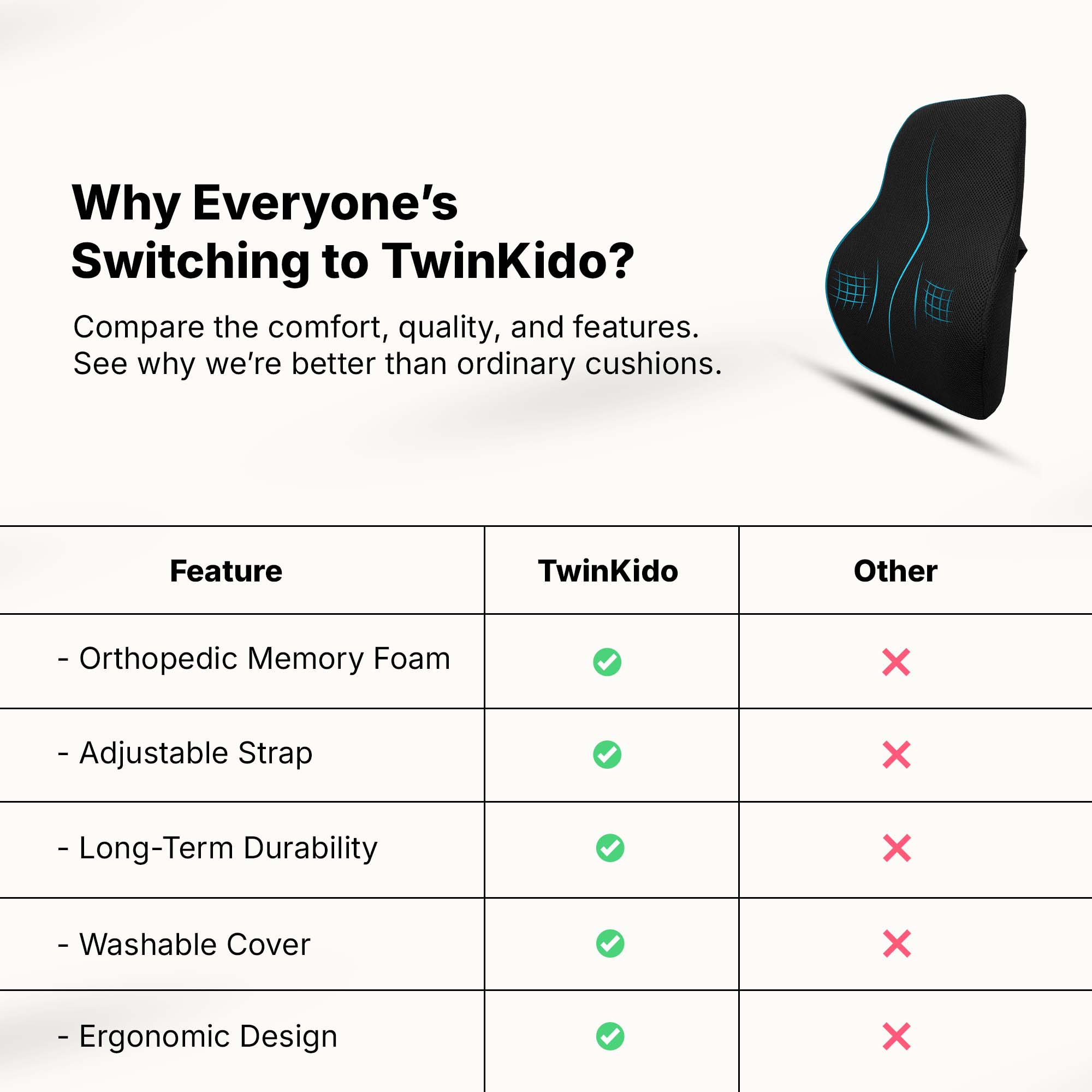 Twinkido products are suitable for everyone—working professionals, elders, frequent travelers, and students. Anyone seeking comfort while working, sleeping, or relaxing, should choose Twinkido.