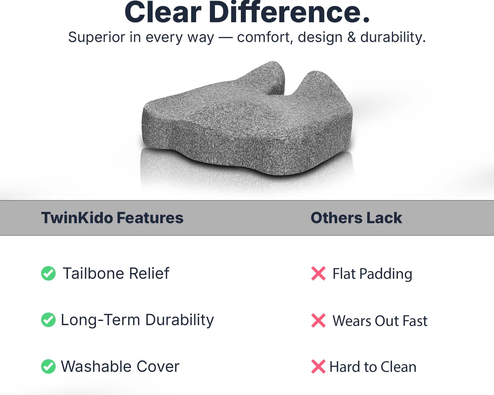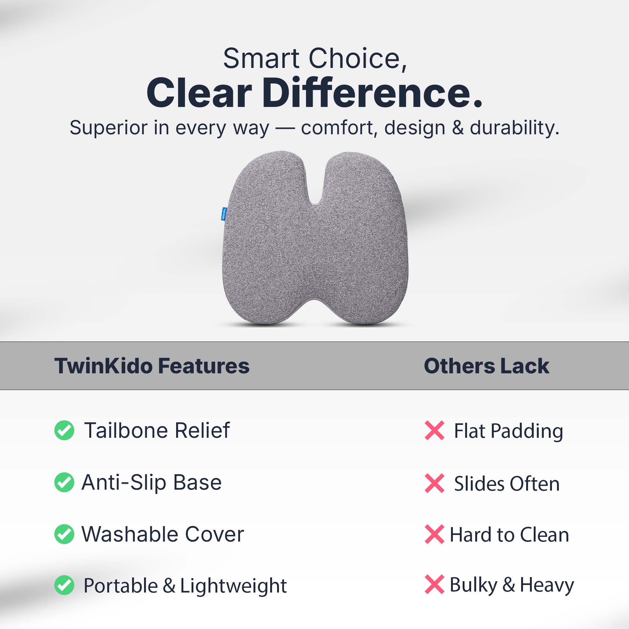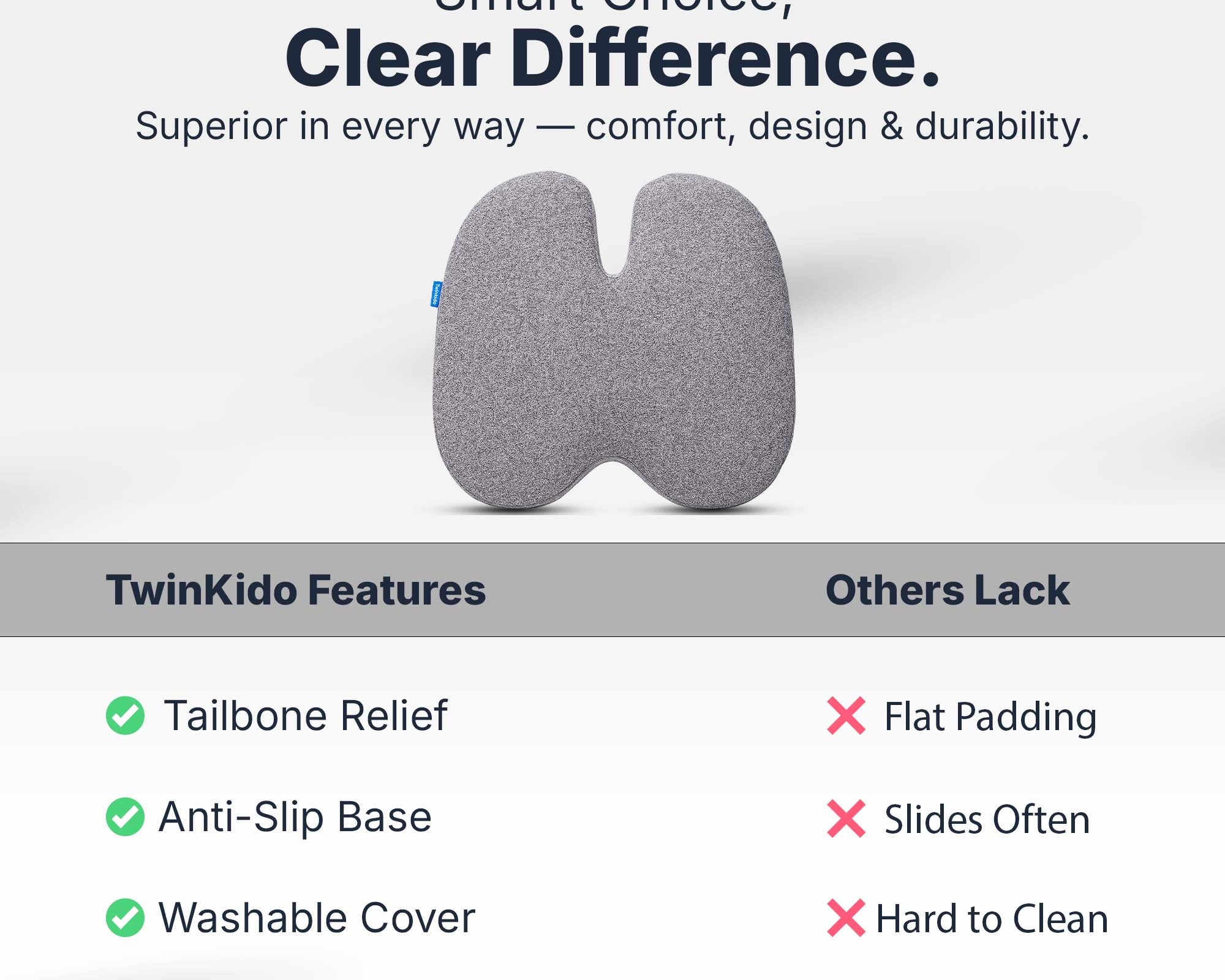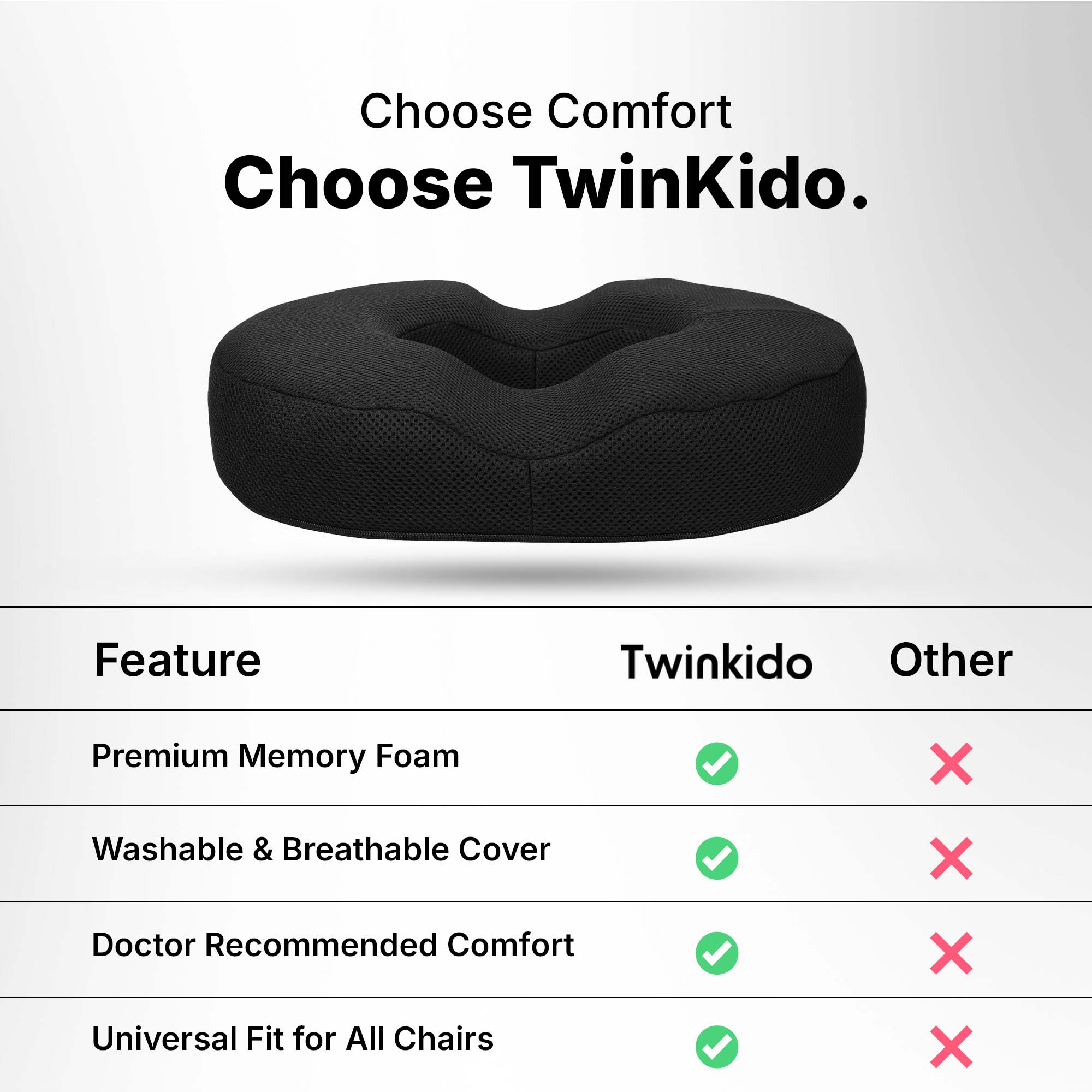 Twinkido is a brand committed to offering you better comfort and well-being through ergonomic solutions. Our products range from donut cushions and wedge pillows to curved backrests and car headrests, designed to improve posture, relieve pain, and improve sleep quality.