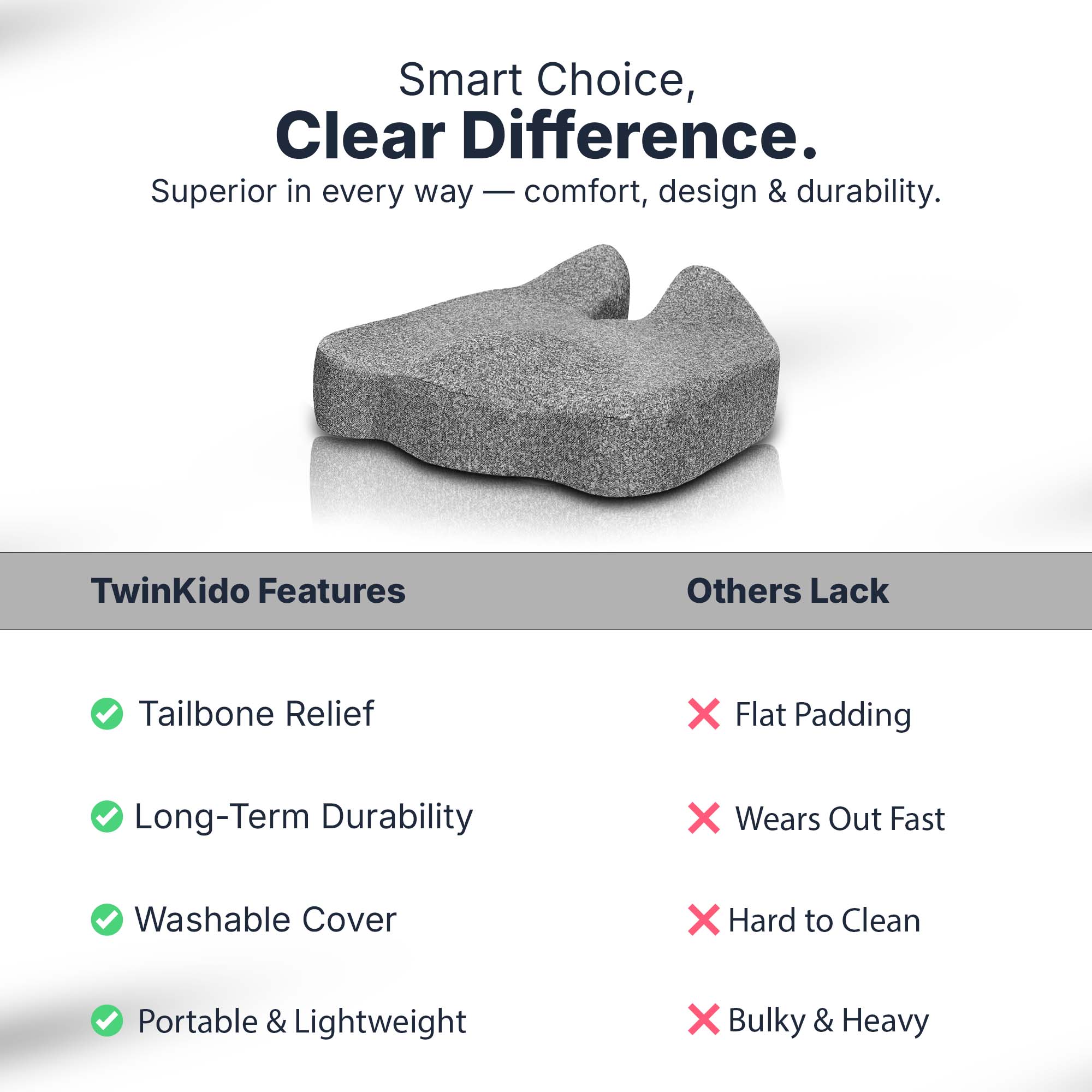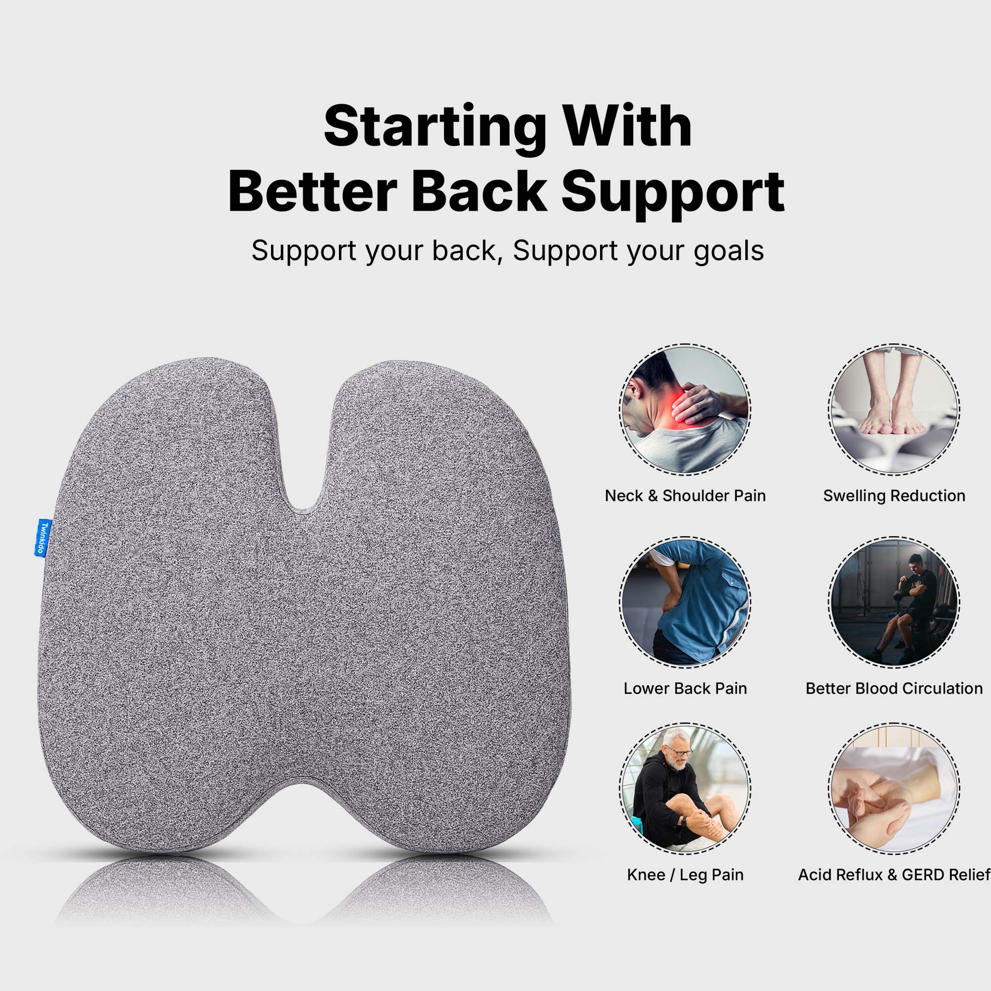 Twinkido is a brand committed to offering you better comfort and well-being through ergonomic solutions. Our products range from donut cushions and wedge pillows to curved backrests and car headrests, designed to improve posture, relieve pain, and improve sleep quality.