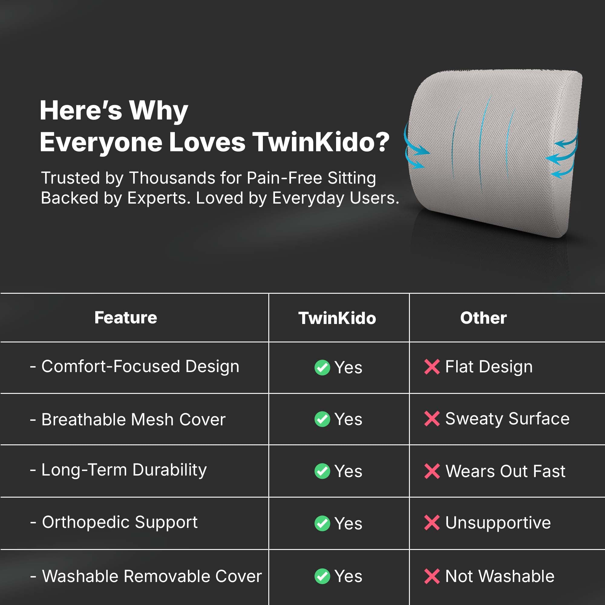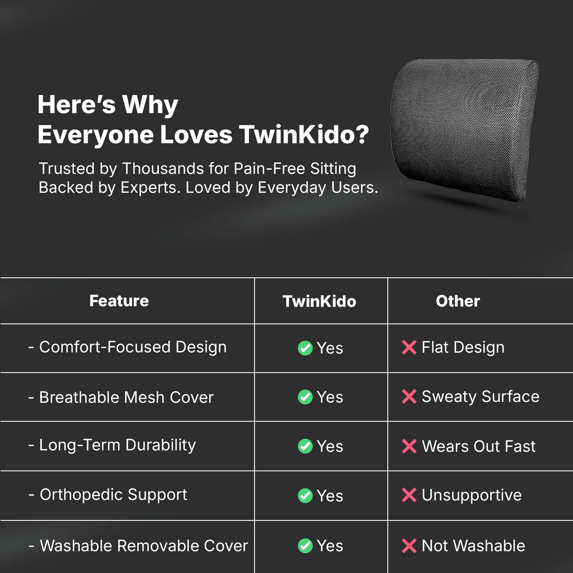 Twinkido doesn’t just build products but we combine science, comfort, and durability to create holistic ergonomic solutions that provide basic pain relief and sleep improvement. Our focus is on improving your overall wellness in today’s fast-paced lifestyle.